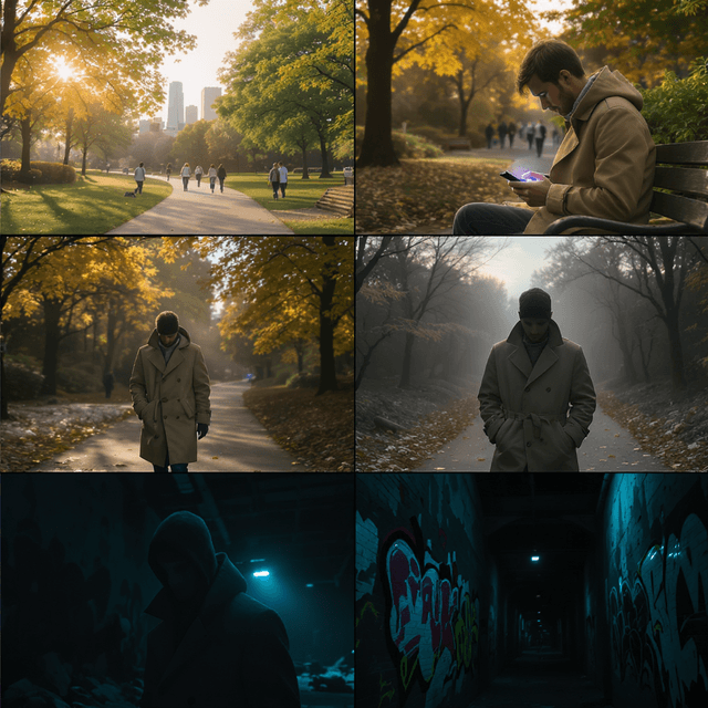 Actionable Tip: The more detail you include about location, lighting, mood, character action, and camera angle, the better the results. Don’t just say “a man in a room” — say “wide shot of a nervous man pacing in a cluttered detective’s office, city lights glowing outside.”