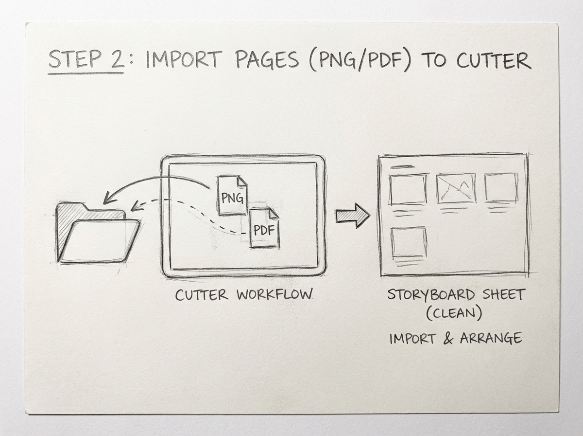 Bring in storyboard boards as PNG or PDF and line them up for shot extraction.