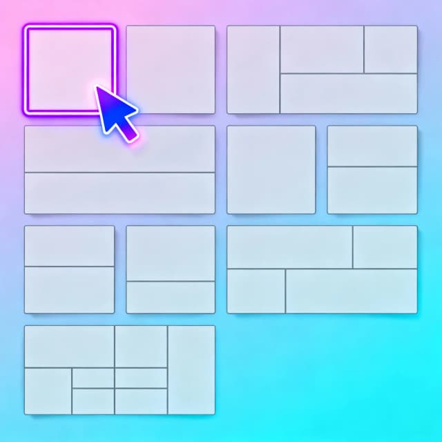 - Diseños de paneles: Selecciona entre plantillas dinámicas—panel único, multipanel, cuadrícula, diagonal o incluso disposiciones personalizadas.