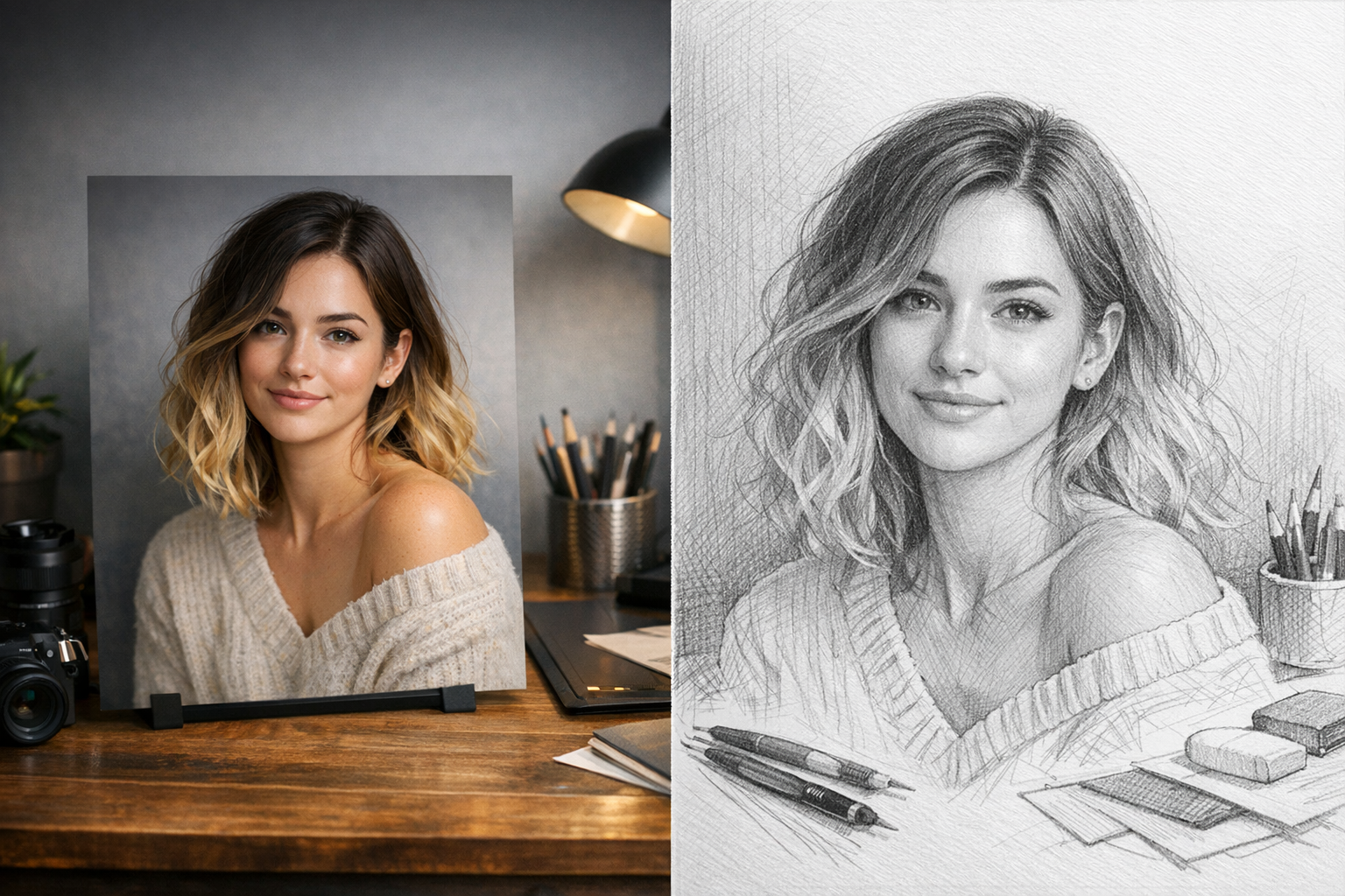 Works for people, objects, scenes, and travel photos — with a cohesive pencil finish.