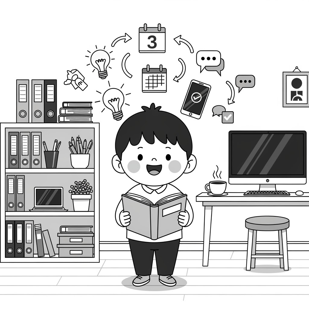 Medium shot, warm window light, first discovery moment, tidy background depth, optimistic mood, no text, no watermark.