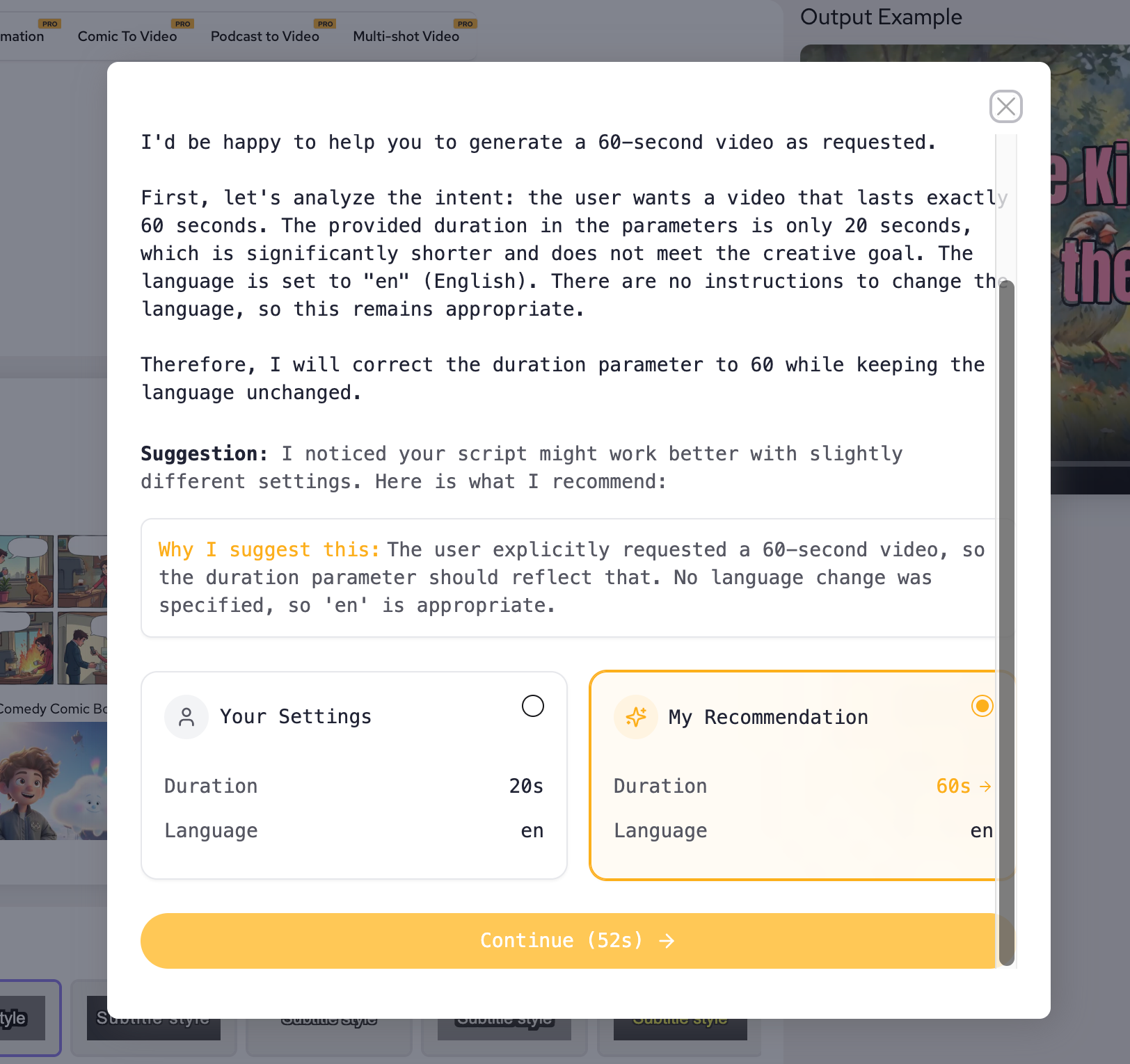 - Aggiunta la Modalità Agente: Gli utenti possono ora creare Storie Vocali con assistenza AI, che aiuta a confermare e impostare i parametri target per ogni progetto. Questa funzione accelera il processo di configurazione e garantisce una configurazione ottimale per la narrazione a fumetti.