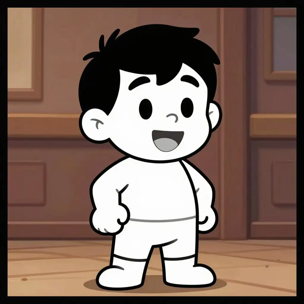 comic strip, cartoonish line art. Family-friendly original character portrait, polished composition, wholesome mood, image-only scene, No text, no words, no letters, no typography, no captions, no labels, no logos, no signage, no watermark.
