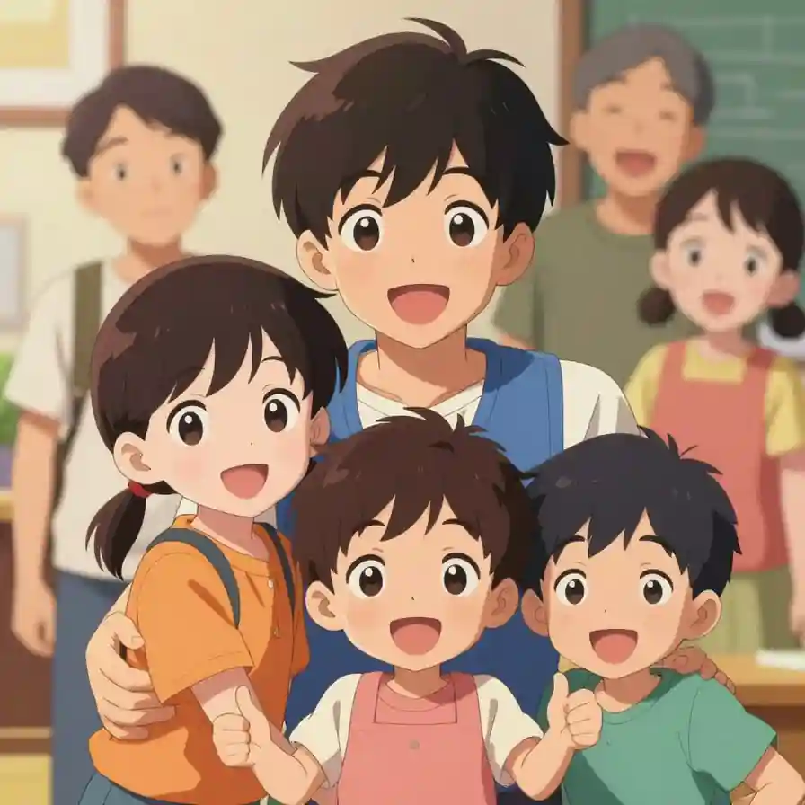 korean manhwa style, anime, manga, ultra-detailed, vibrant colors, soft shading, cinematic lighting. Cheerful hero scene, expressive lighting, rich background detail, child-safe creator-ready AI art, image-only composition, No text, no words, no letters, no typography, no captions, no labels, no logos, no signage, no watermark.