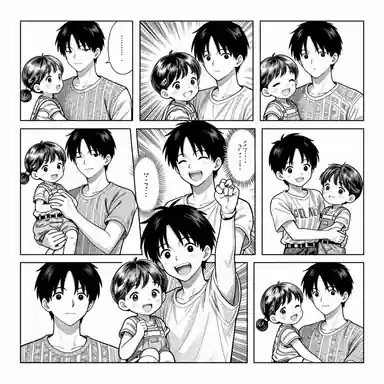 japanese manga illustration,Black-and-white with screentone shading, clean line art, dynamic compositions, detailed shading,Inspired by Tetsuya Nomura’s sharp designs or Eiichiro Oda’s dynamic action. Cheerful hero scene, expressive lighting, rich background detail, child-safe creator-ready AI art, image-only composition, No text, no words, no letters, no typography, no captions, no labels, no logos, no signage, no watermark.