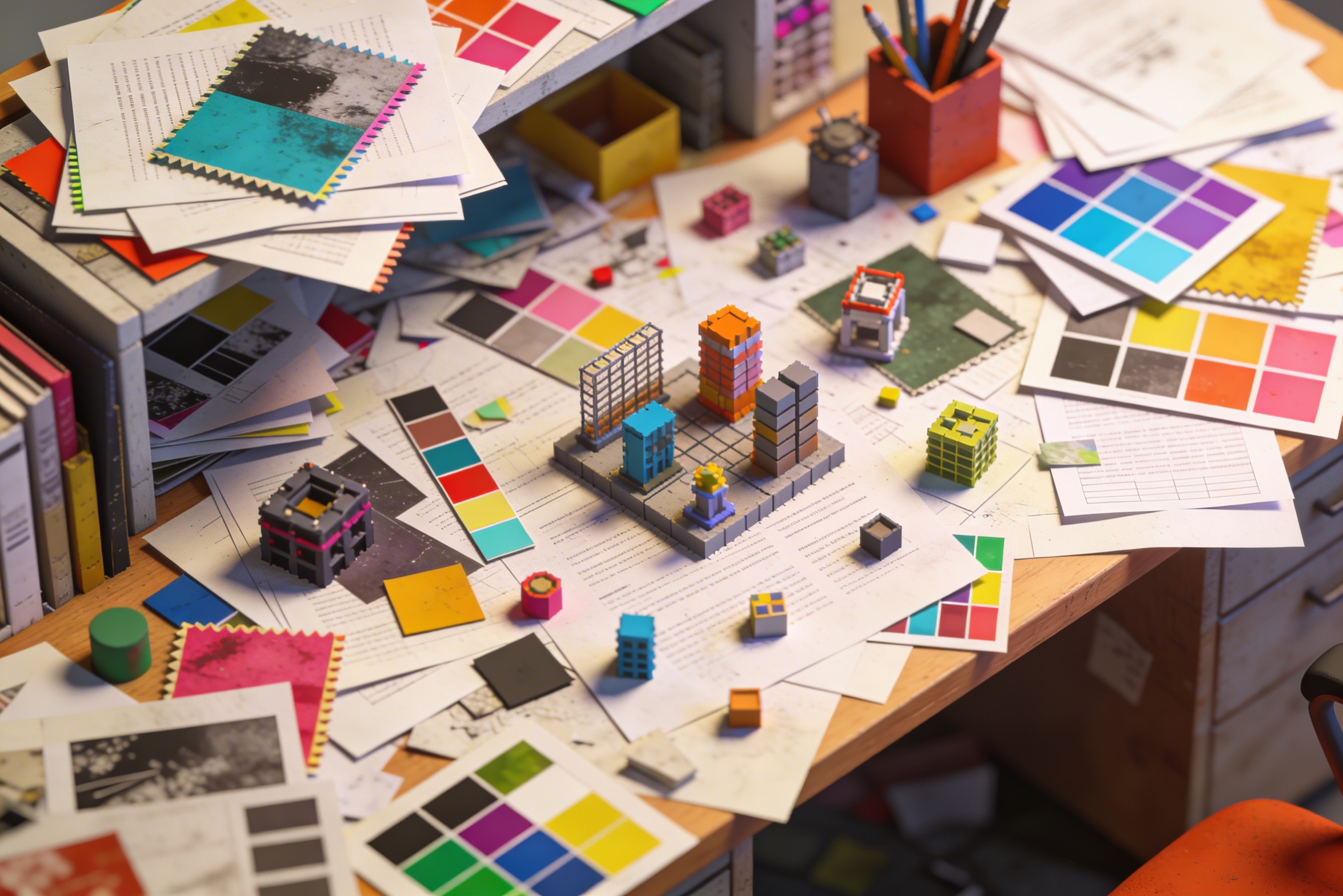 Juggling characters, backgrounds, props, and effects across dozens of files and folders, losing track of consistency and style.