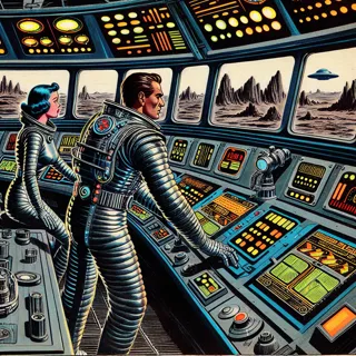 Retro-Futuristic Sci-Fi Control Room in Manga Art Style