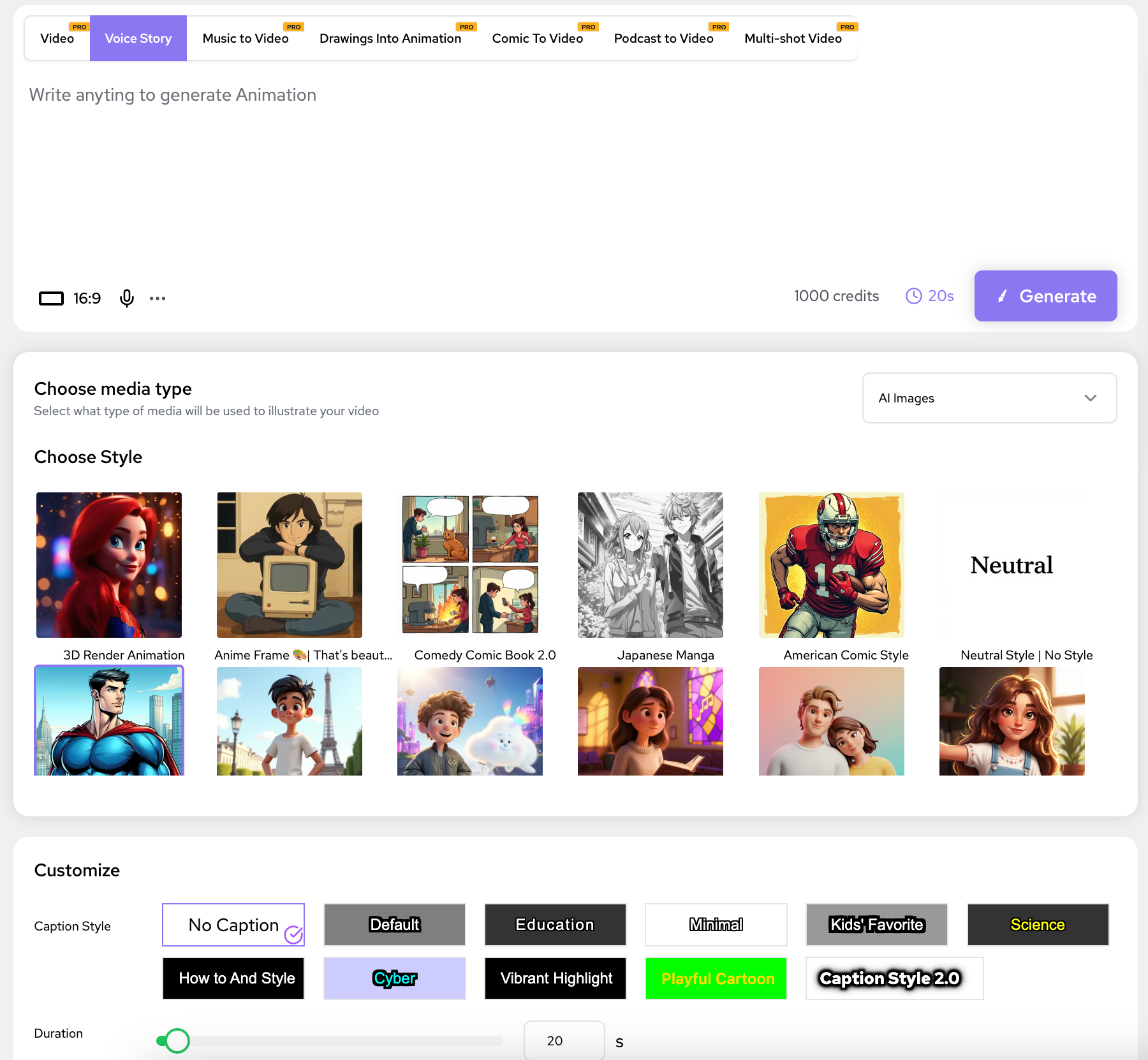 Create recording to video videos with LlamaGen's AI Storyteller.