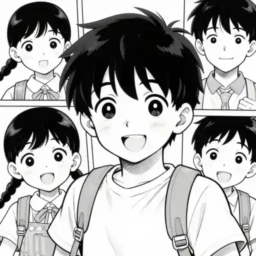 Wholesome japanese manga illustrations with clear emotion, readable subjects, and family-friendly details.