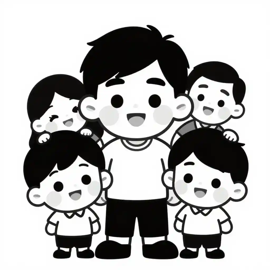 Notion style illustration, The image is a black and white cartoon depicting,. Cheerful hero scene, expressive lighting, rich background detail, child-safe creator-ready AI art, image-only composition, No text, no words, no letters, no typography, no captions, no labels, no logos, no signage, no watermark.