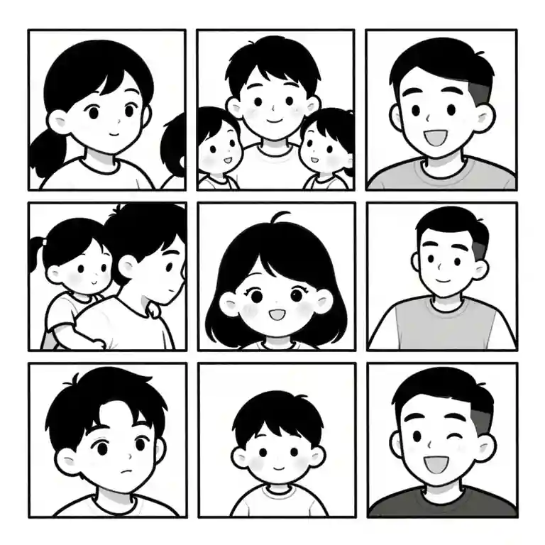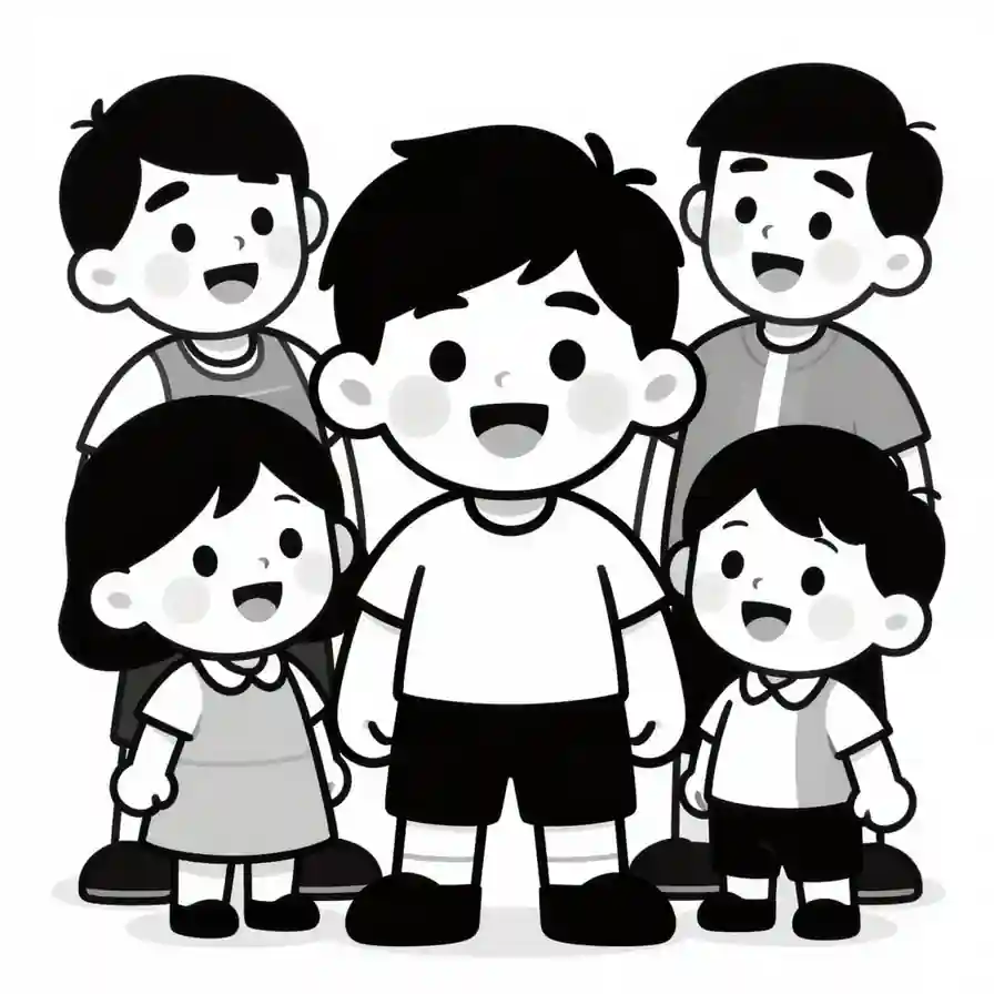 Notion style illustration, The image is a black and white cartoon depicting,. Family-friendly original character portrait, polished composition, wholesome mood, image-only scene, No text, no words, no letters, no typography, no captions, no labels, no logos, no signage, no watermark.