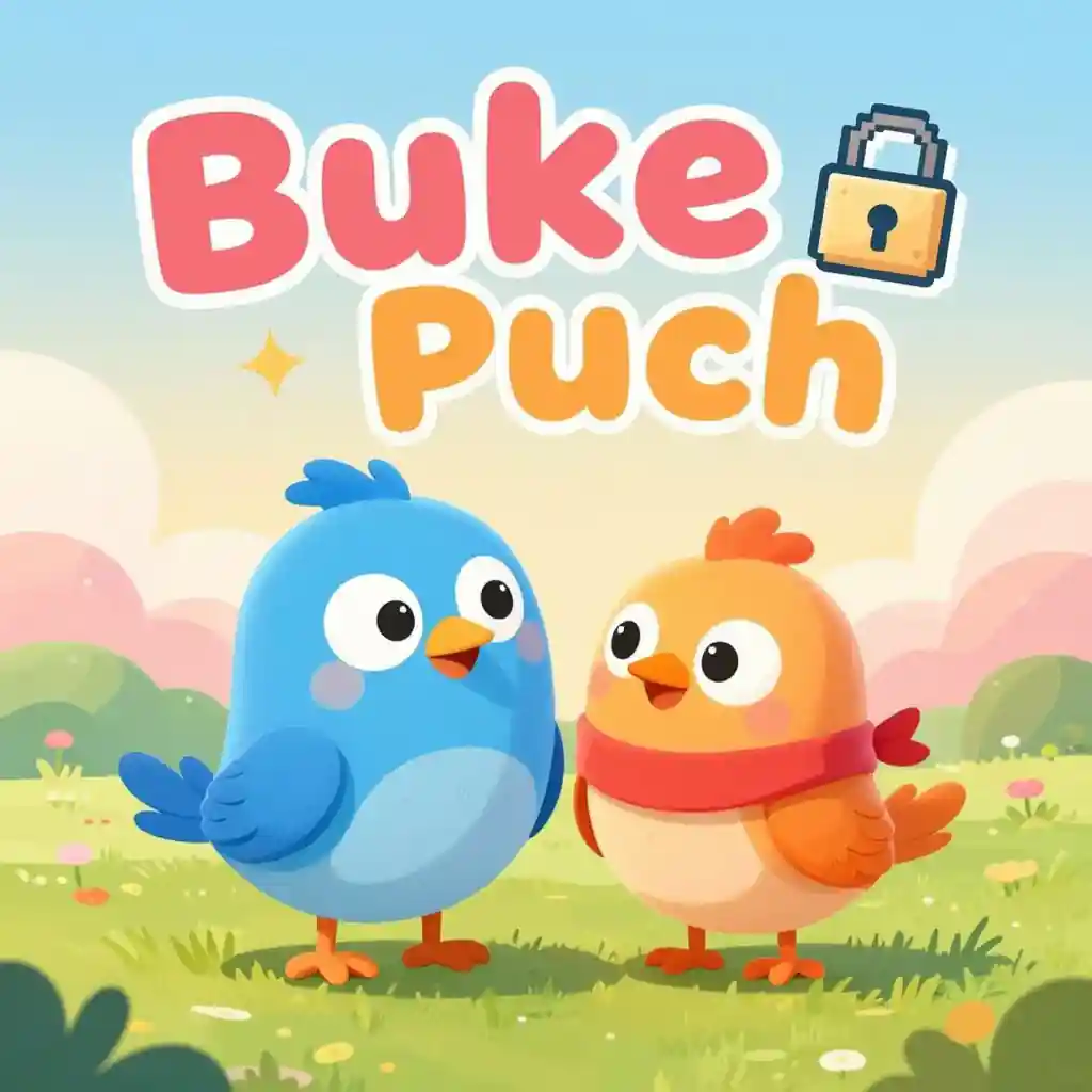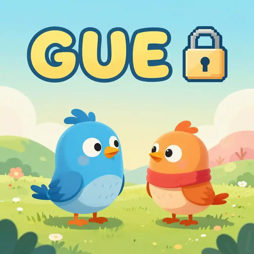 The source template points toward whimsical cartoon birds, soft gradients, storybook style: blue bird, orange bird with red scarf, pastel grassy hills, bold rounded text, pixelated padlock icon, playful scenery. Use that as a style brief, then add your own cast, setting, emotion, camera angle, and scene purpose.