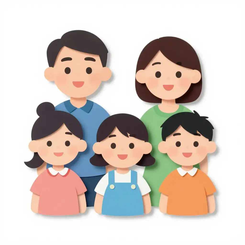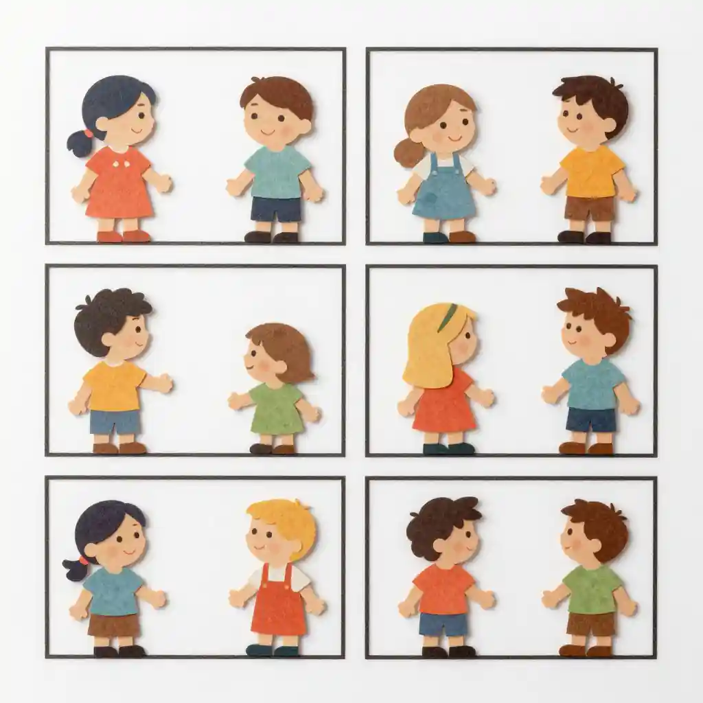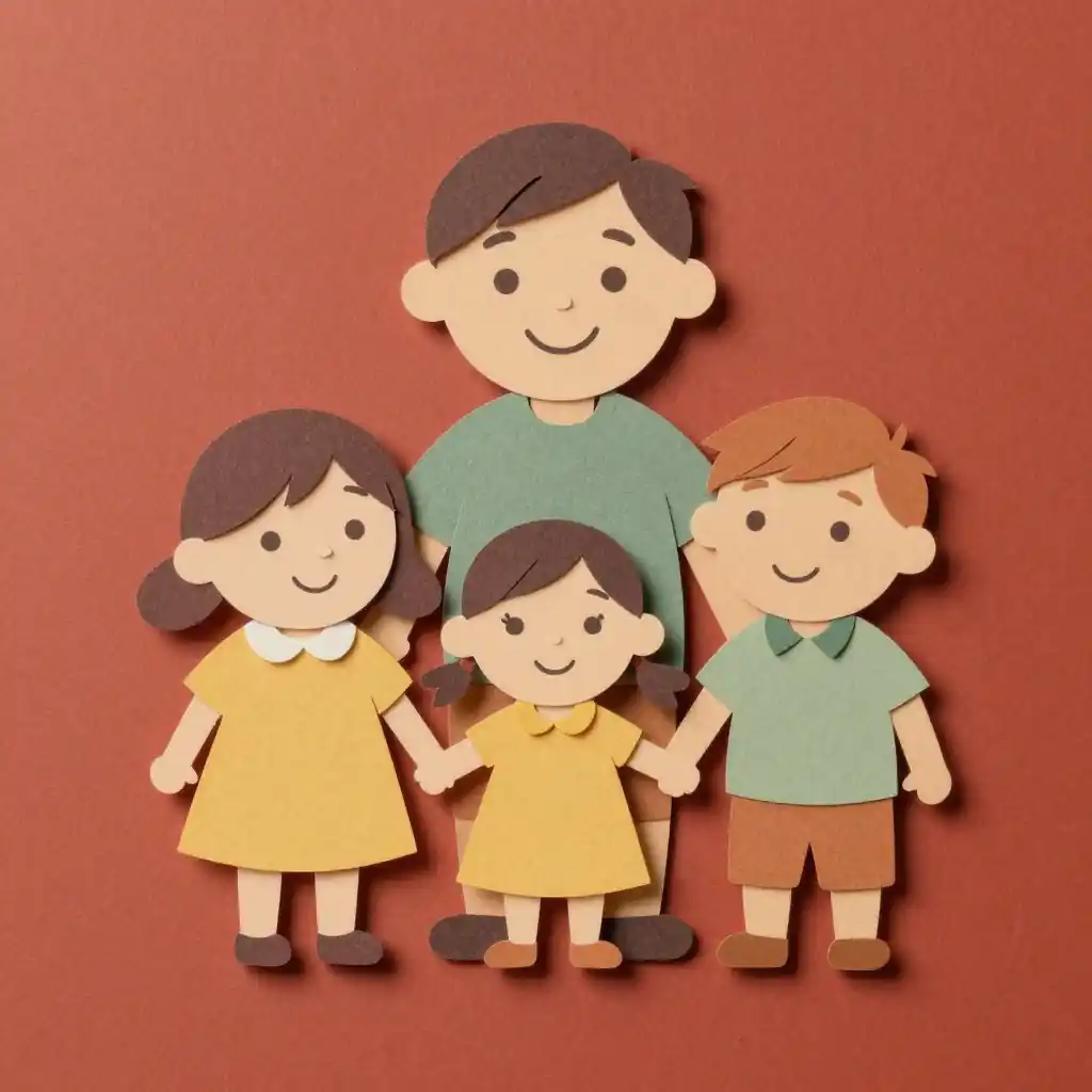 Wholesome kontext paper cut style illustrations with clear emotion, readable subjects, and family-friendly details.
