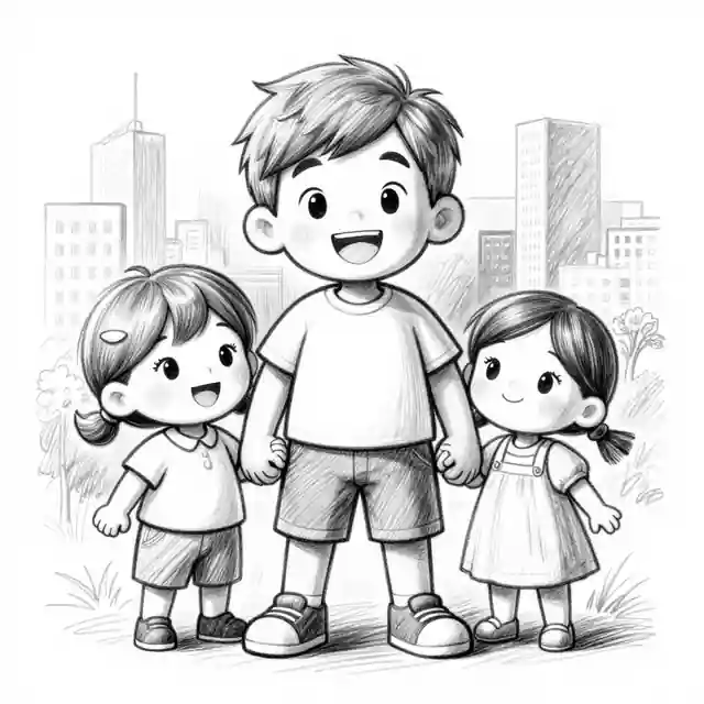 pencil sketch style, black and white drawing, detailed line art, artistic sketch style. Cheerful hero scene, expressive lighting, rich background detail, child-safe creator-ready AI art, image-only composition, No text, no words, no letters, no typography, no captions, no labels, no logos, no signage, no watermark.