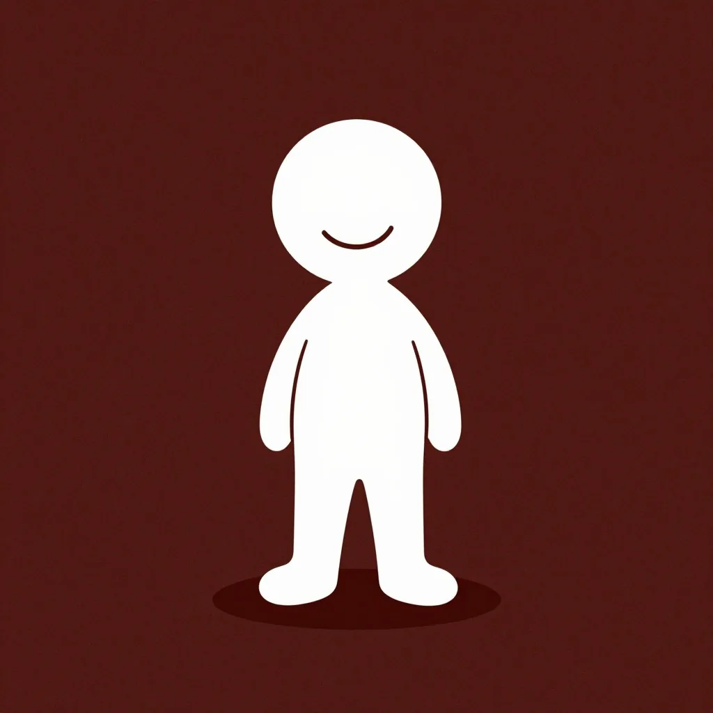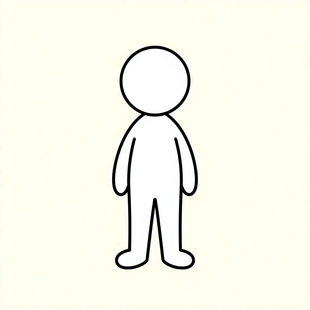 A minimalist, whimsical illustration featuring a single stick-figure character. Family-friendly original character portrait, polished composition, wholesome mood, image-only scene, No text, no words, no letters, no typography, no captions, no labels, no logos, no signage, no watermark.