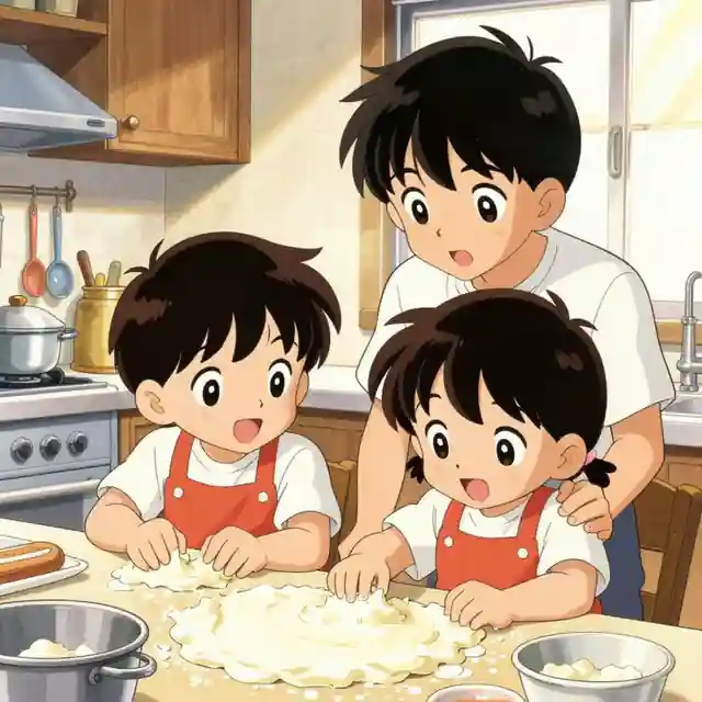 Use this workflow when you need a character concept, comic panel, picture book moment, anime key visual, or animation reference in a consistent nostalgic manga kitchen scene look.