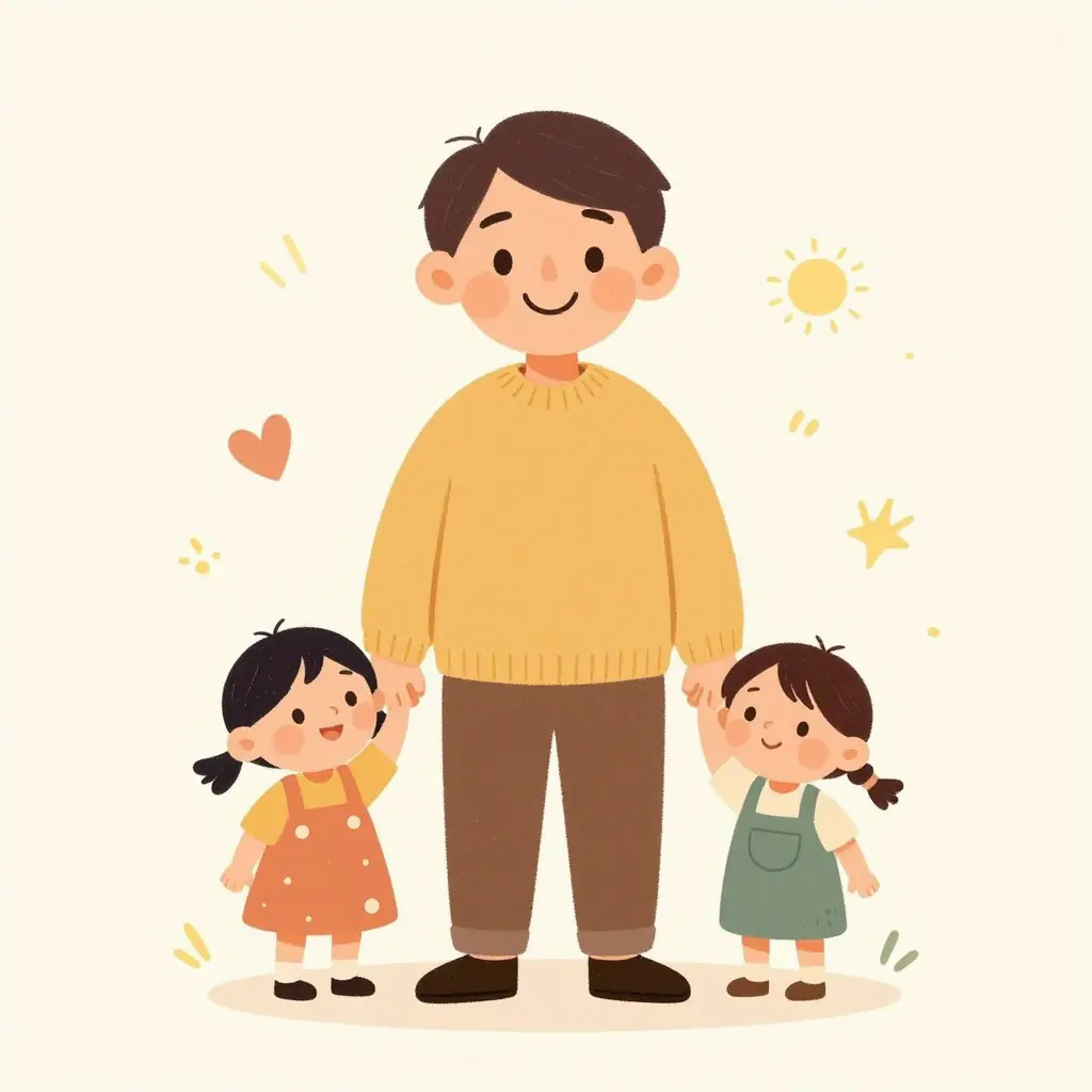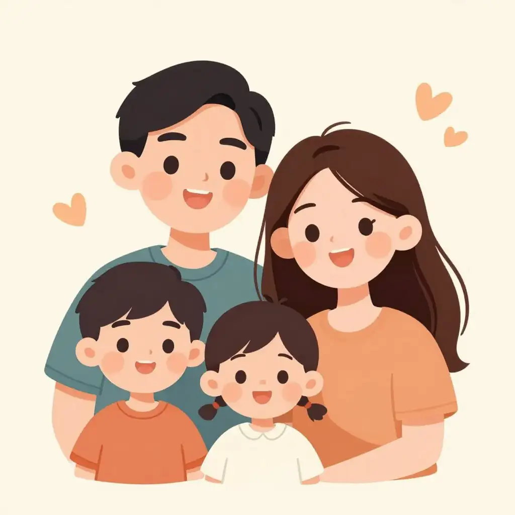 Whimsical Vector Illustration Style.Use minimal, warm-colored, hand-written style. Family-friendly original character portrait, polished composition, wholesome mood, image-only scene, No text, no words, no letters, no typography, no captions, no labels, no logos, no signage, no watermark.