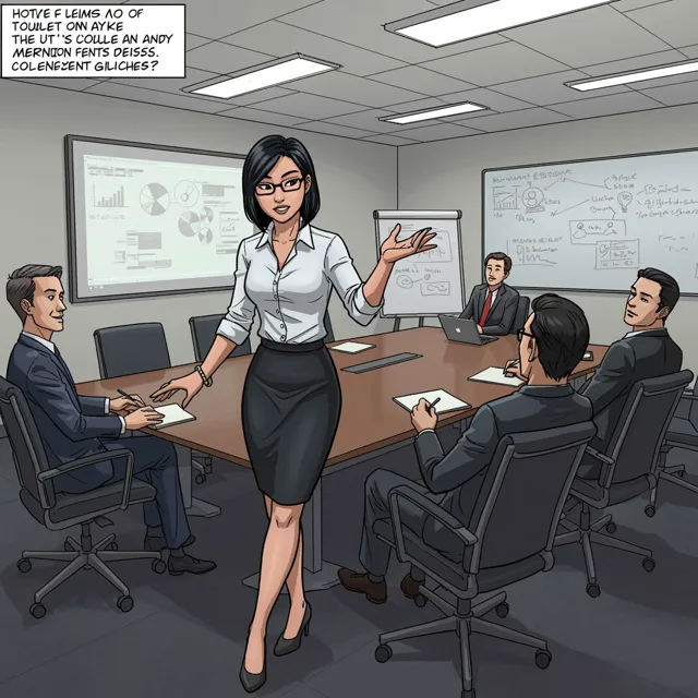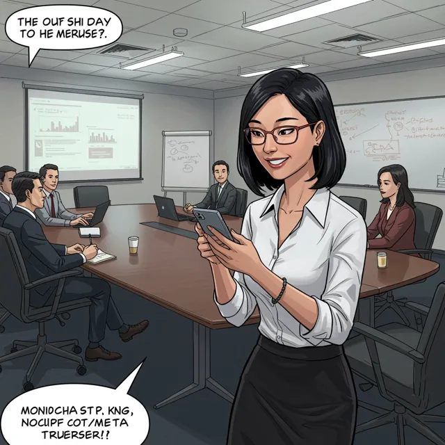 The boss notices Monicha’s laughter and interrupts the meeting.