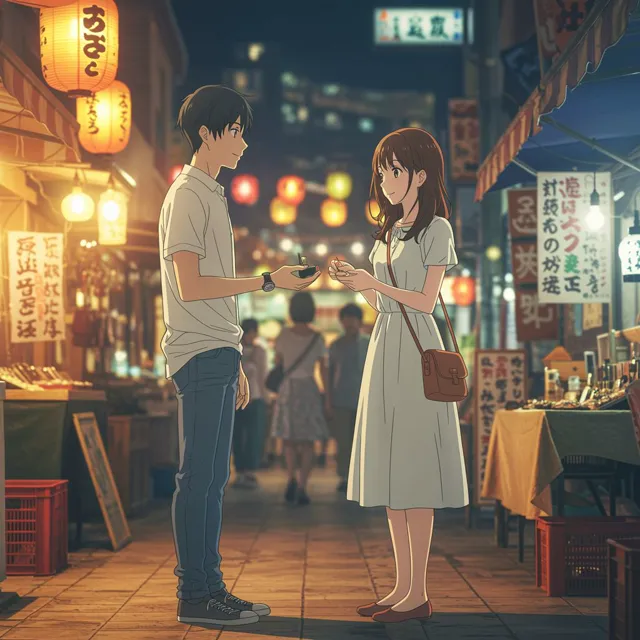 Protagonists attempt to mend their relationship as they enjoy the vibrant night market.
