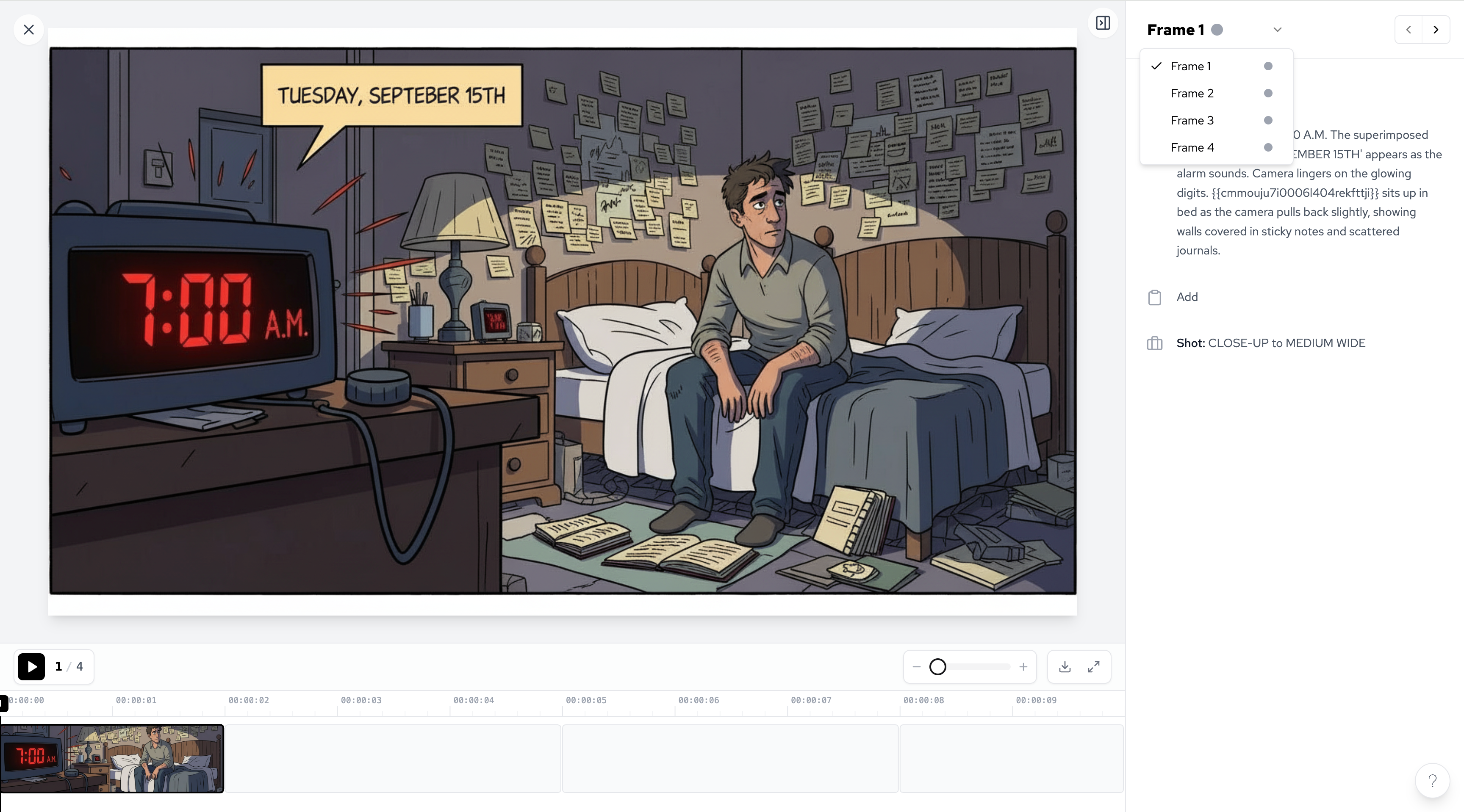 Present your storyboard as an interactive player, enabling dynamic playback of scenes and panels. This new view is ideal for pitching story concepts, animatics, or sequential art, offering a cinematic experience for viewers.
