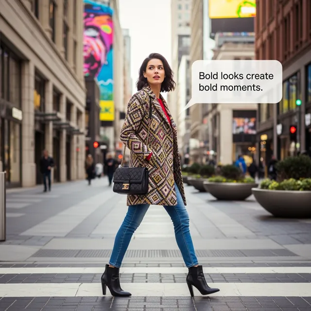 时尚广告通过AI增强叙事,展现都市氛围与个性风格。