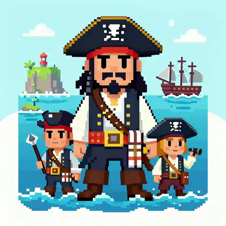Turn a short idea into pirate adventure pixel art style characters, environments, covers, and scene references that fit real creator workflows.